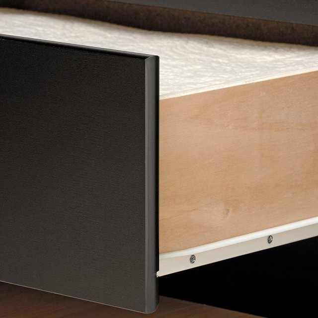 Spacious drawers house clothes and bed linens. This stylish queen platform storage bed has six spacious drawers (three per side for each occupant) which are ideal for storing bed linens, clothes and, in particular, socks! Finger pulls make sure drawers open easily. Some queen platform beds come with storage in the form of drawers shelves or hidden lift up storage. Prepac coal harbor mates platform storage bed with 6 drawers, queen, black.